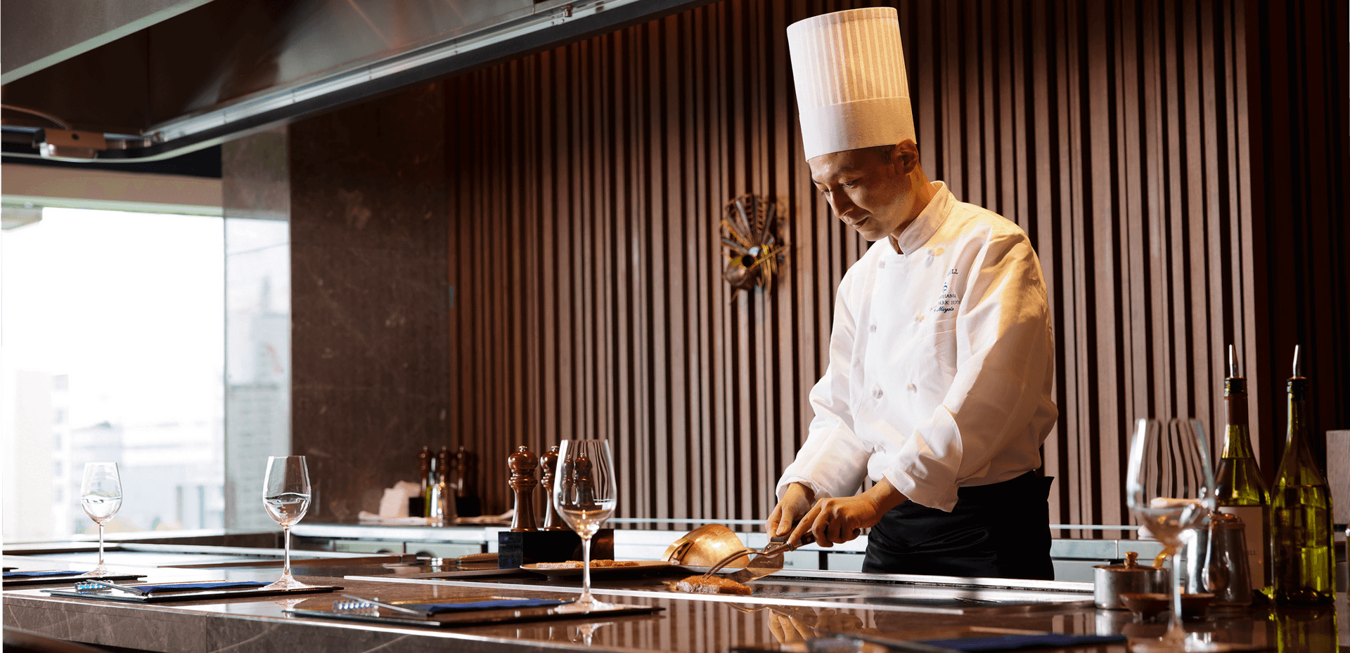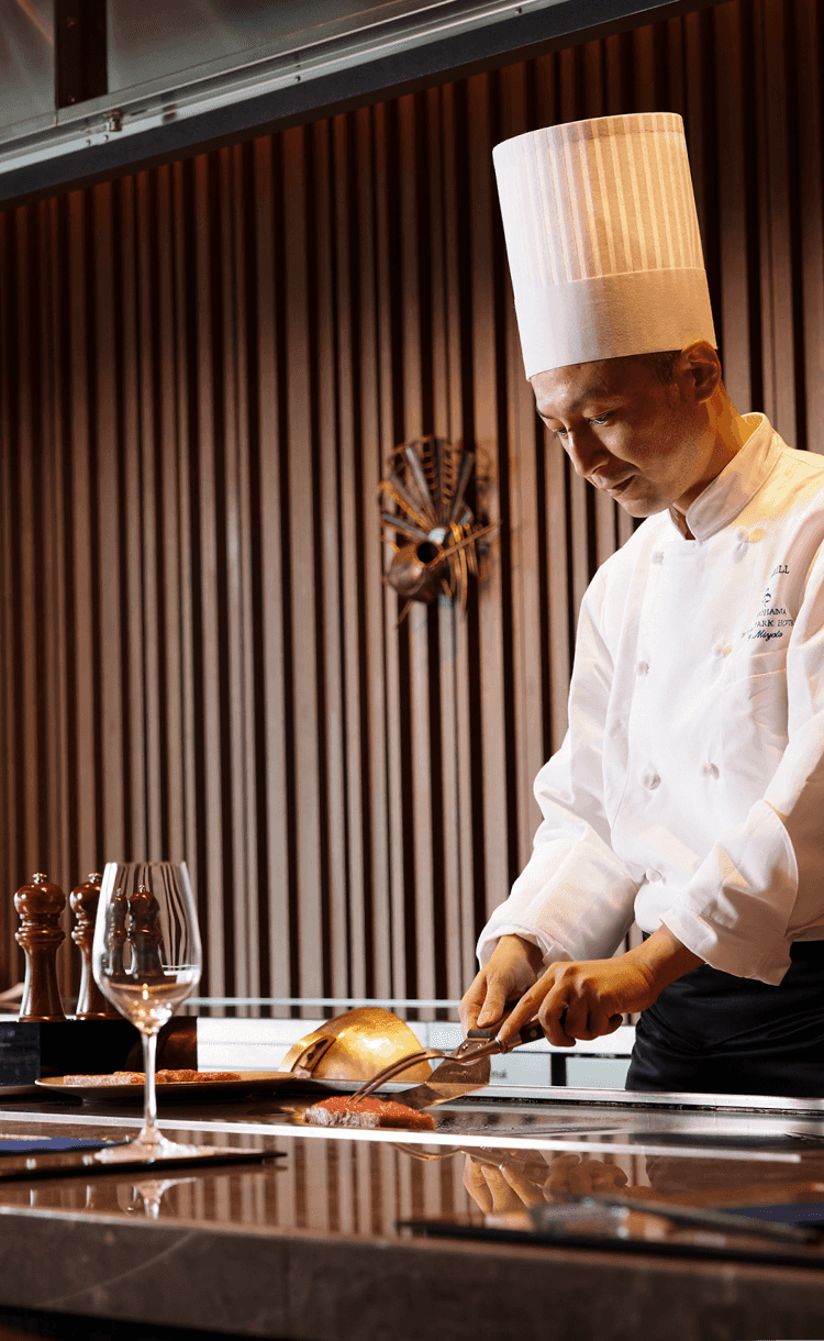 - 鉄板カウンターで素材をシンプルに焼き上げ、その持ち味を生かしたお料理がお楽しみいただけます。そのほか、横浜ロイヤルパークホテルで長年愛されてきた名物メニュー「ローストビーフ」をはじめ、ステーキやハンバーグ、定番のホテルカレーなどを神奈川県産野菜と組み合わせて、バリエーション豊かにご用意いたします。