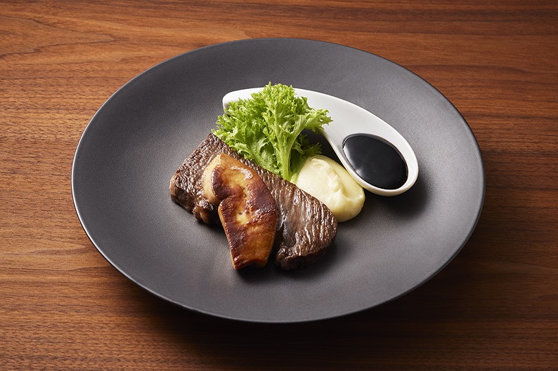 黒毛和牛ステーキとフォワグラのソテー バルサミコソース